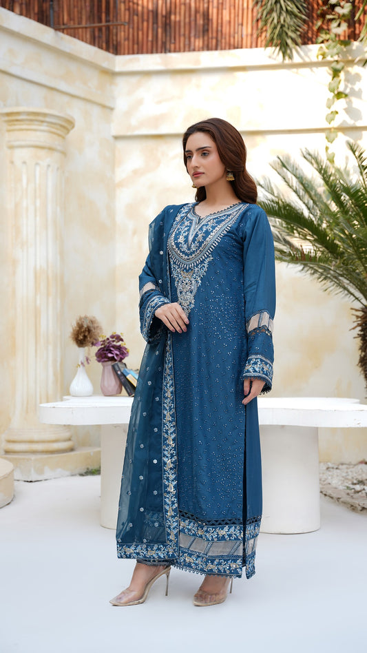 Raw Silk Light Purple Embroidered Suit with Dupatta