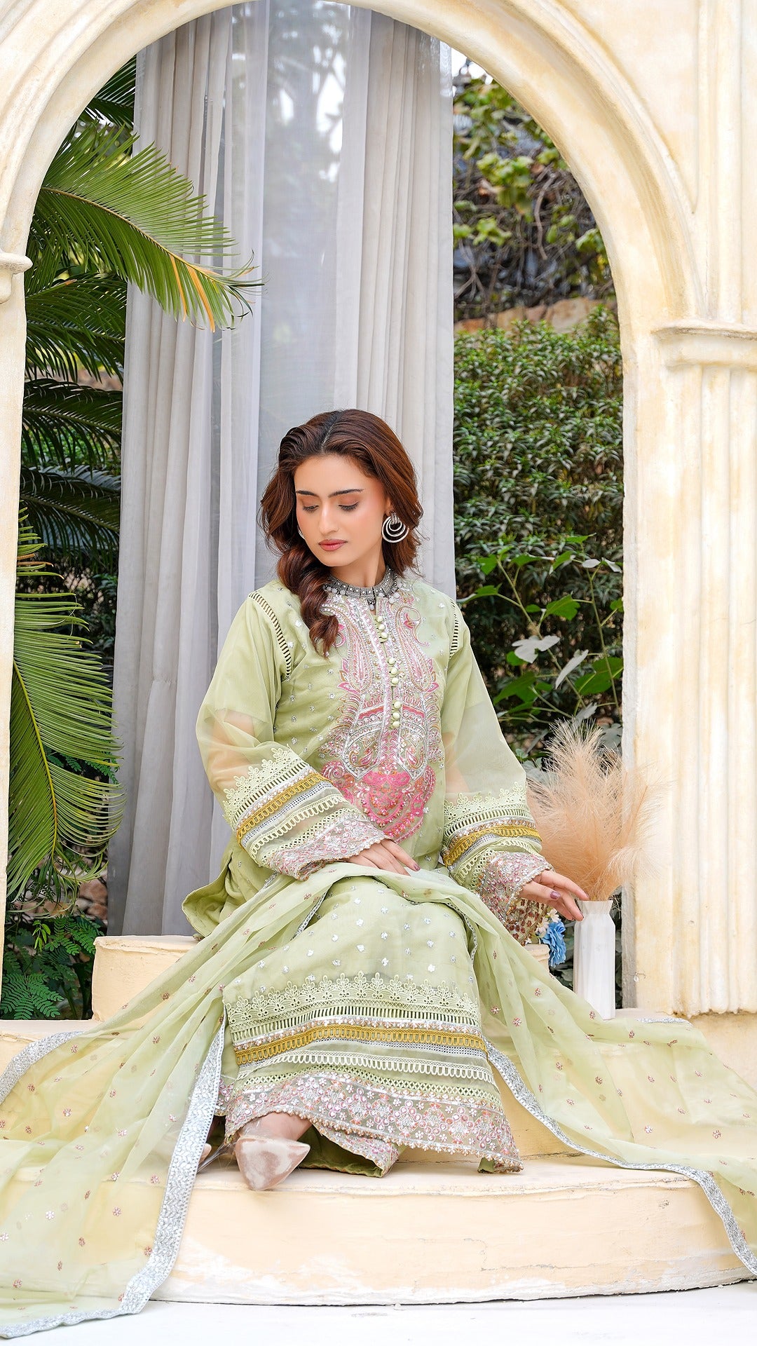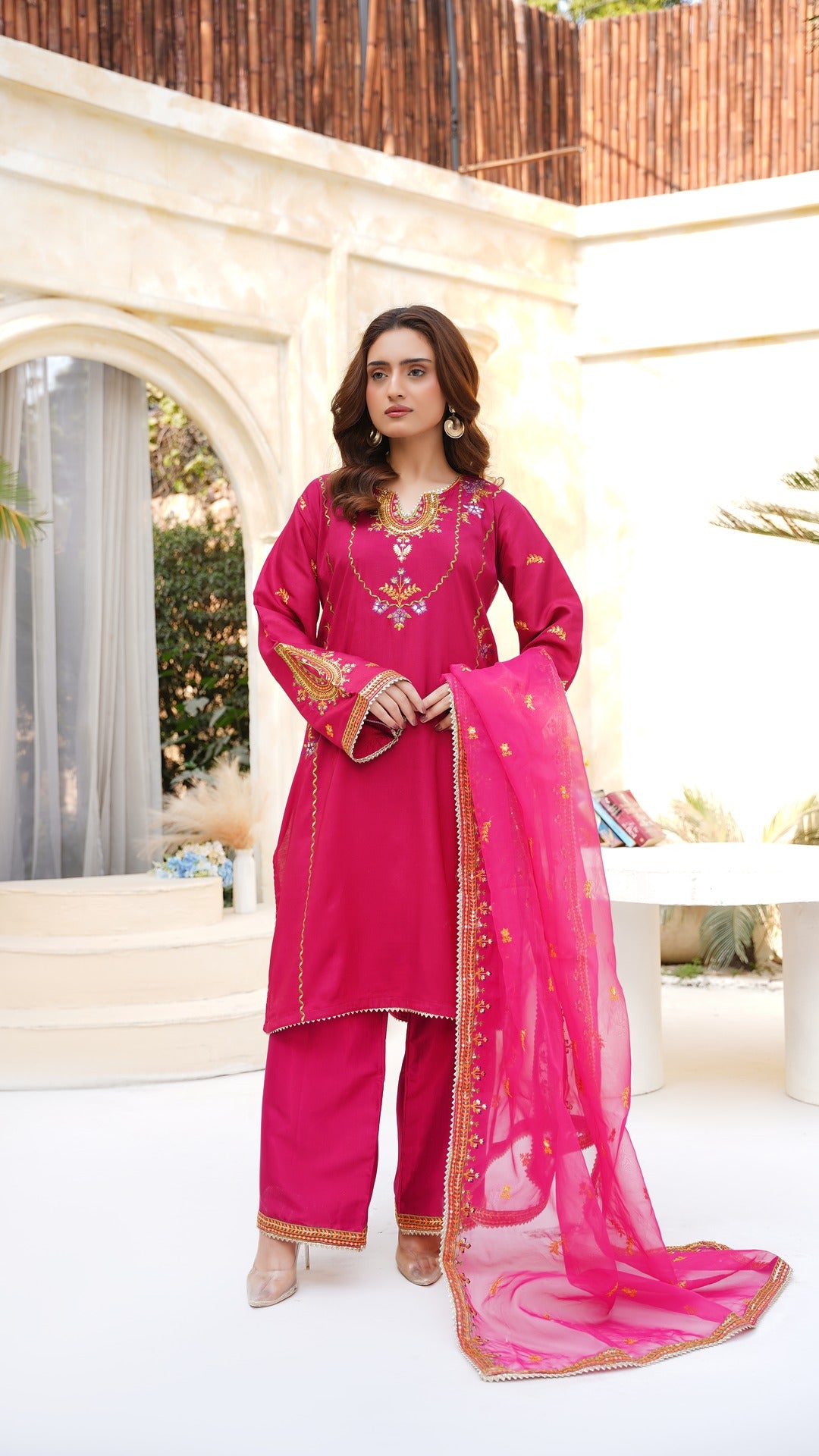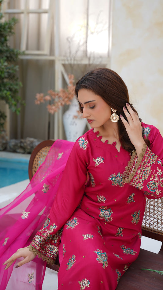 Raw Silk Light Purple Embroidered Suit with Dupatta